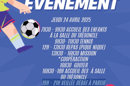 événement « accueil jeunes » organisé du 05/04 au 06/04/2024. Accueil de loisirsPar Léo Lagrange Savigny27 mars 2024 Lire la suite